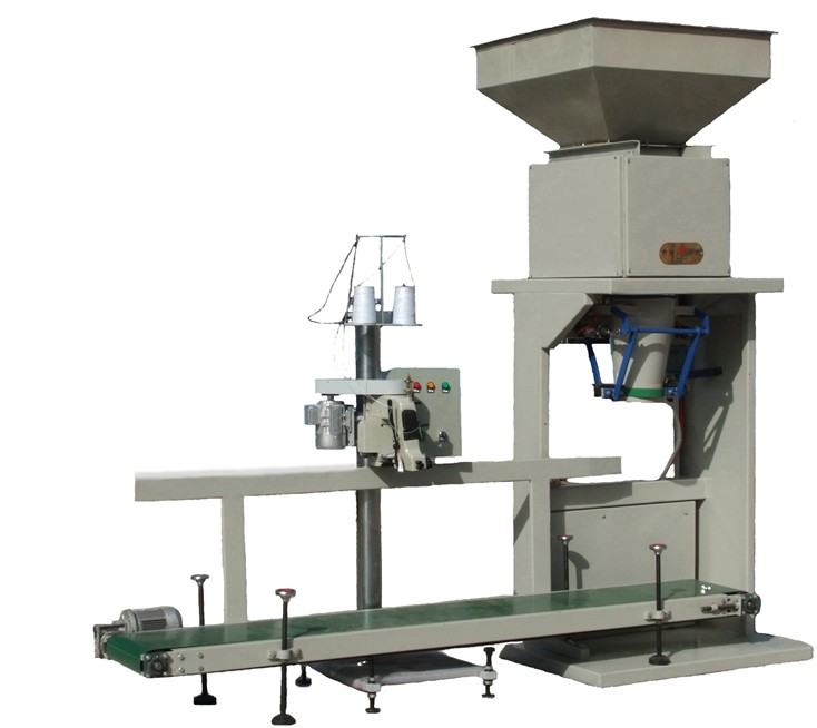 自動(dòng)顆粒灌裝機(jī)使用過(guò)程:人工協(xié)助上袋,自動(dòng)稱重、夾袋、充填,經(jīng)輸送帶傳遞進(jìn)行自動(dòng)封口或縫包