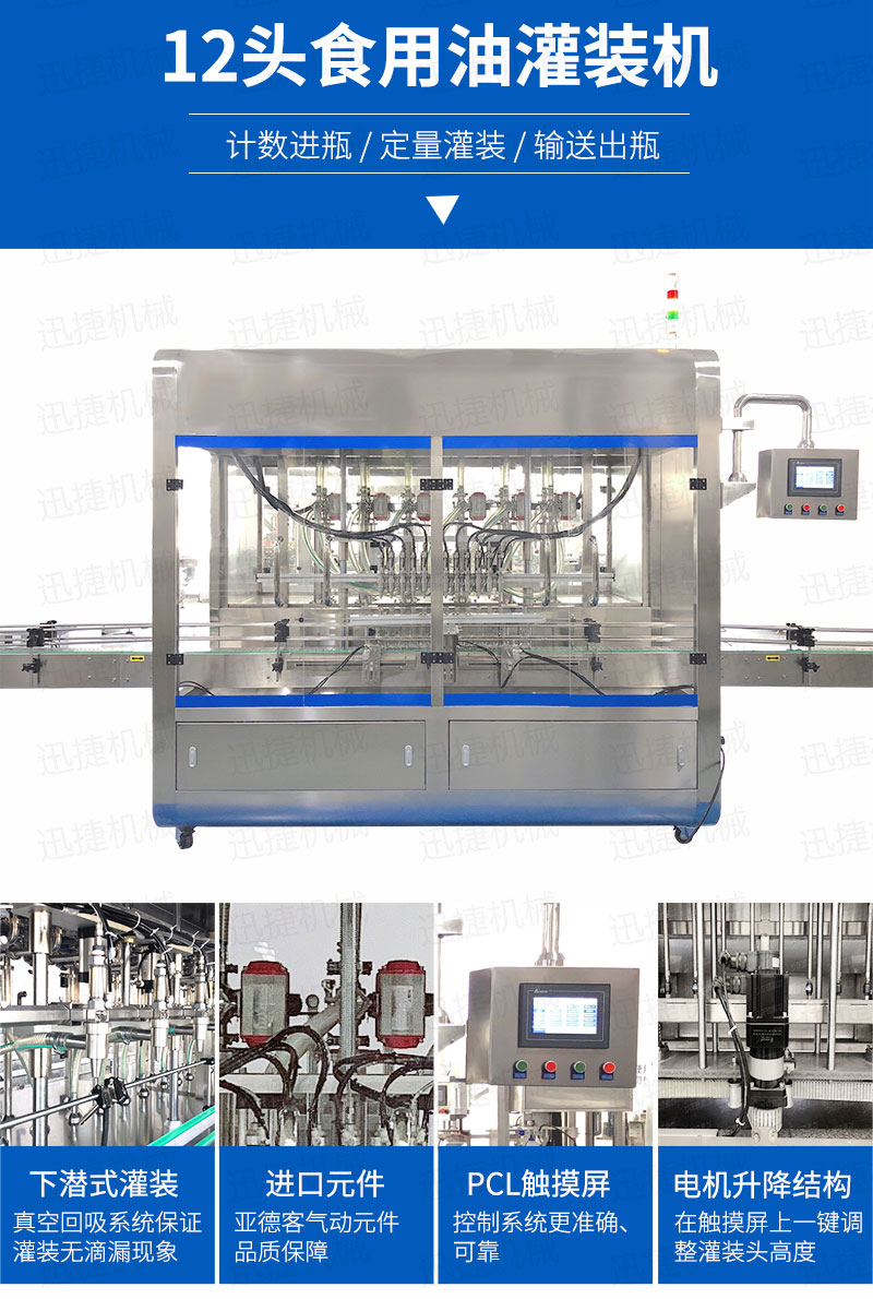 (2)摒棄了傳統(tǒng)夾瓶口灌裝方式,采用下潛式灌裝,在桶口以內(nèi)約5-8mm處進(jìn)行灌裝,下料口設(shè)計, 避免了灌裝速度快產(chǎn)生細(xì)小油珠噴濺污染瓶口的現(xiàn)象產(chǎn)生。配合多段式快慢速灌裝,可以保障高速灌裝時全速灌裝,又可有效解決氣壓過高快速灌裝時泡沫溢瓶現(xiàn)象,變頻控制更,自我保護(hù)更安全,穩(wěn)定,延長設(shè)備使用壽命。