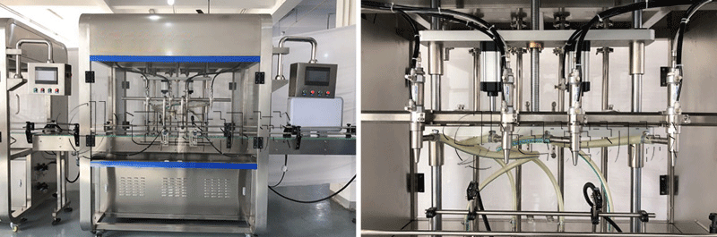 四頭充氮機(jī)和四頭充油機(jī)。 瓶子可以自動充滿氮?dú)庖赃_(dá)到保鮮效果。 自動流量計(jì)式灌裝機(jī)保證了灌裝速度和精度。 獨(dú)立芯設(shè)計(jì)的防滴灌裝頭使油脂包裝車間免受二次污染,更加清潔。